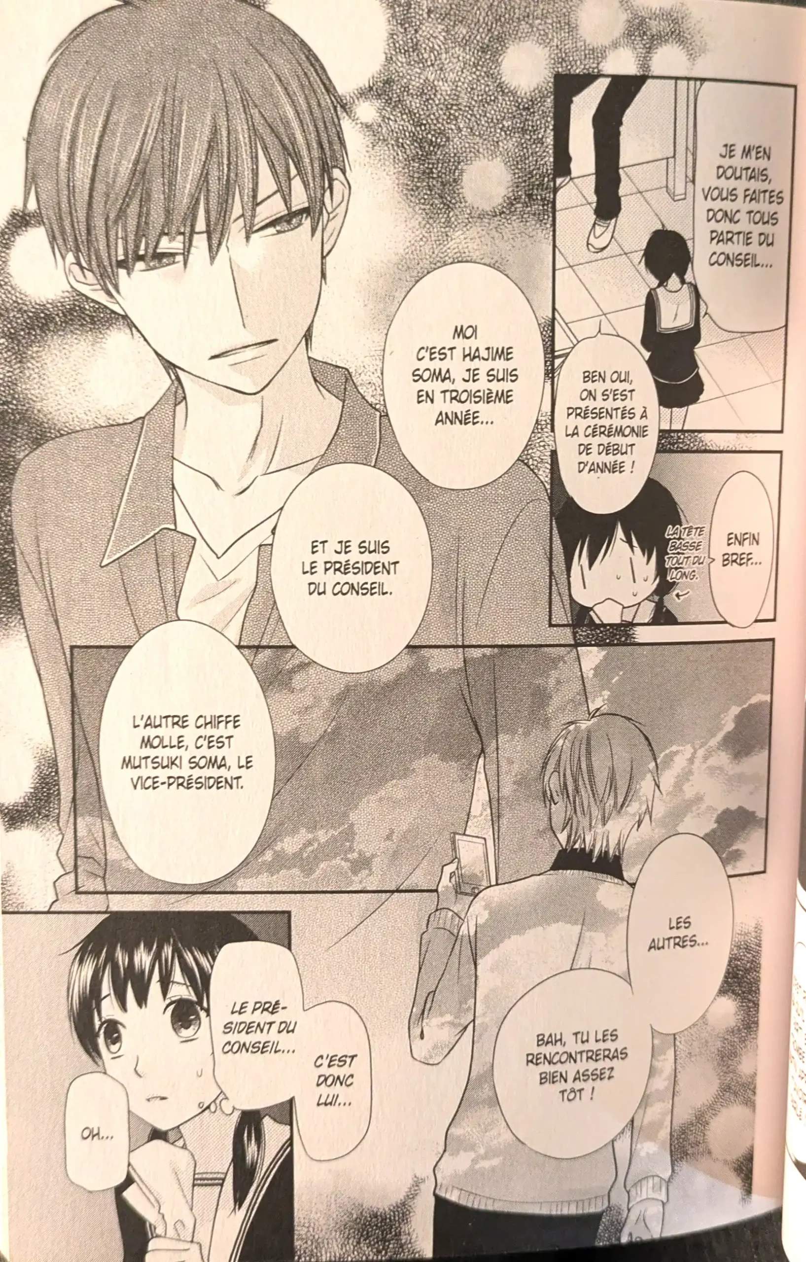 L’histoire principale de ce spin-off est nettement en dessous de ce à quoi la mangaka nous avait habitués. Sawa, complexée et sans cesse rabaissée par sa mère, ne m’a pas convaincu. Parallèlement, on rencontre à un rythme trop rapide les différents enfants du clan Soma, et cela dilue de manière trop importante son histoire qui aurait mérité un meilleur traitement.